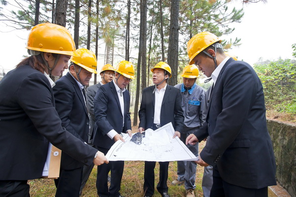 ? ? 簽約儀式結(jié)束后,紀(jì)總立即趕赴寧國水泥廠日產(chǎn)5000噸水泥生產(chǎn)線,對照圖紙,現(xiàn)場查看項(xiàng)目建設(shè)位置。